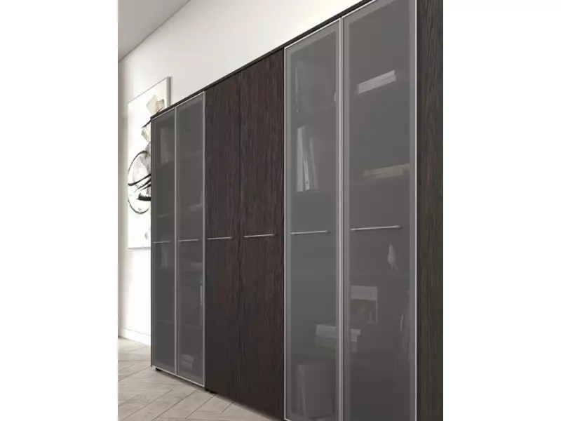 В ящиках тумб использованы скрытые системы выдвижения Quadro немецкой фирмы Hettich с системой Silent System – встроенное демпфирование. Эта система позволяет закрывать ящики плавно и бесшумно. В шкафы среднего и высокого уровней можно установить прозрачные или тонированные стеклянные двери в алюминиевой раме с покрытием серебристого цвета. Двери оснащены замками с «ломающимся» ключом.
