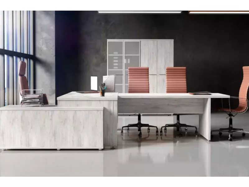Кабинет руководителя Sentida Lux – это лаконичность дизайна и надежность конструкции – то самое пространство, которое в наших силах структурировать «под себя»: выбрать цвет и фактуру столешницы, конфигурацию шкафа, количество тумб для документов.