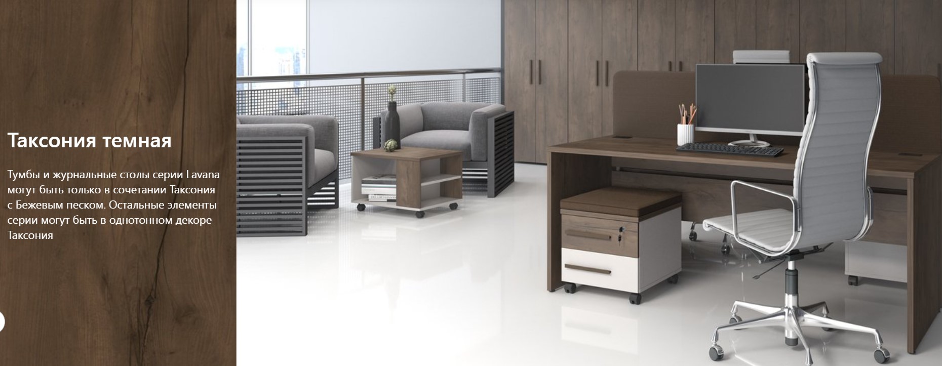 Стол журнальный на колесных опорах. Декоры: столешница, малые бока - Таксония; остальные детали - Бежевый песок.